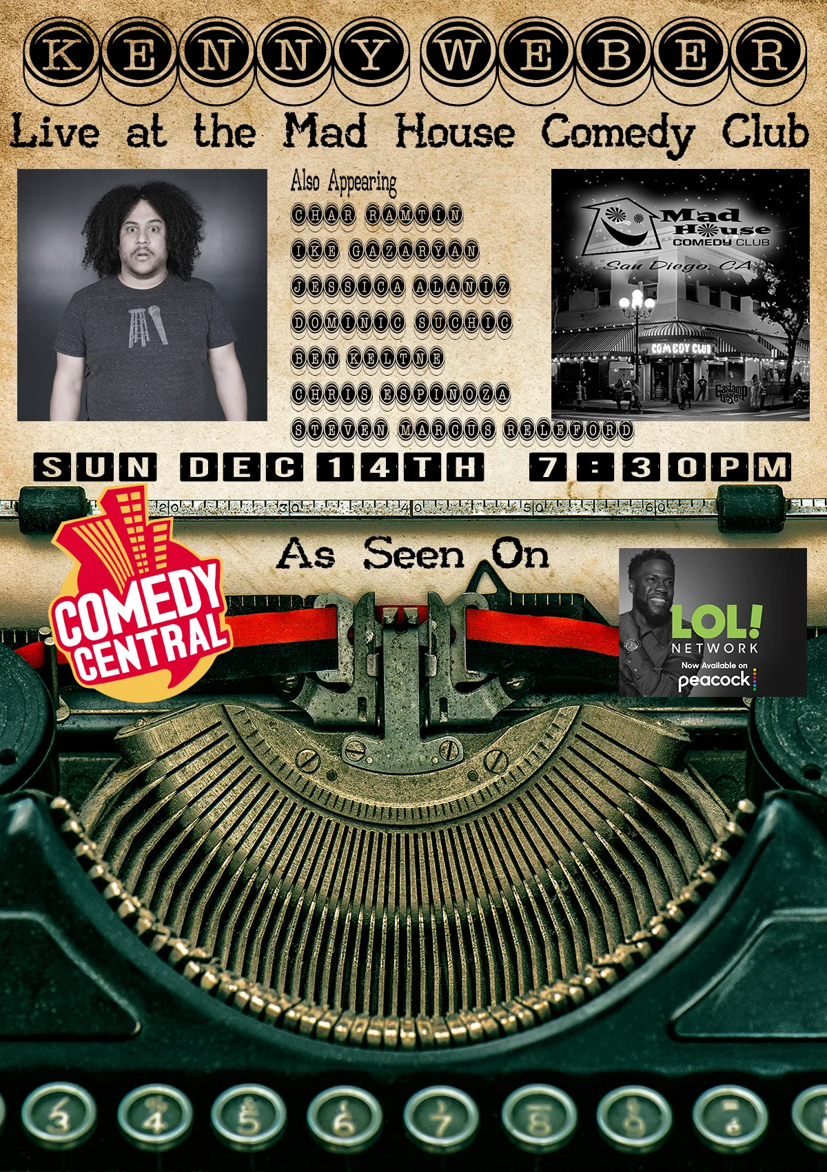 It’s The Mad House Favorites Show! 8 comics! Starring Kenny Weber as seen on Comedy Central, The LOL Network on Peacock and more! Plus another 7 hilarious stand up comedians all on one show!