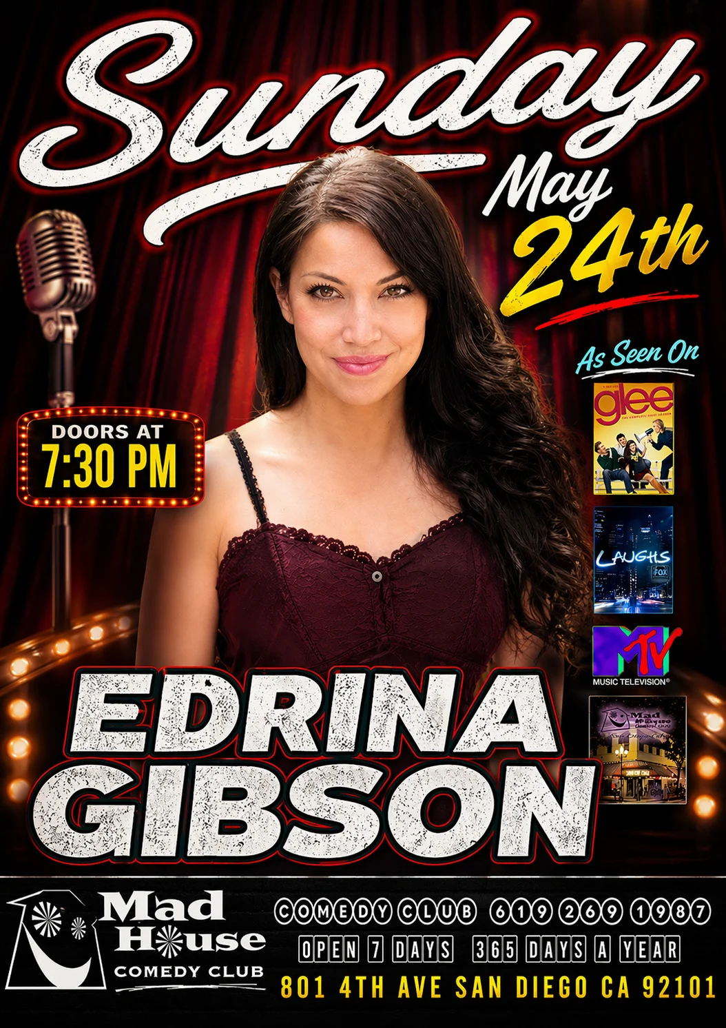 It’s The World Famous Mad House Comedy Club Favorites Show starring Edrina Bliss Gibson as seen on GLEE, Laughs on Fox, MTV and more! Plus another 6 hilarious standup comedians all on one show!