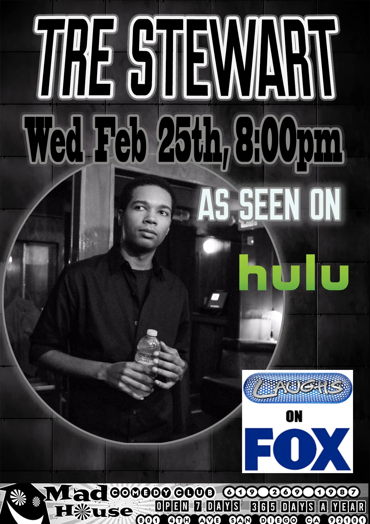 It’s The World Famous Mad House Comedy Club Favorites Show starring Tre Stewart as seen on Laughs on Fox, Hulu and more! Plus another 6 hilarious standup comedians all on one show!