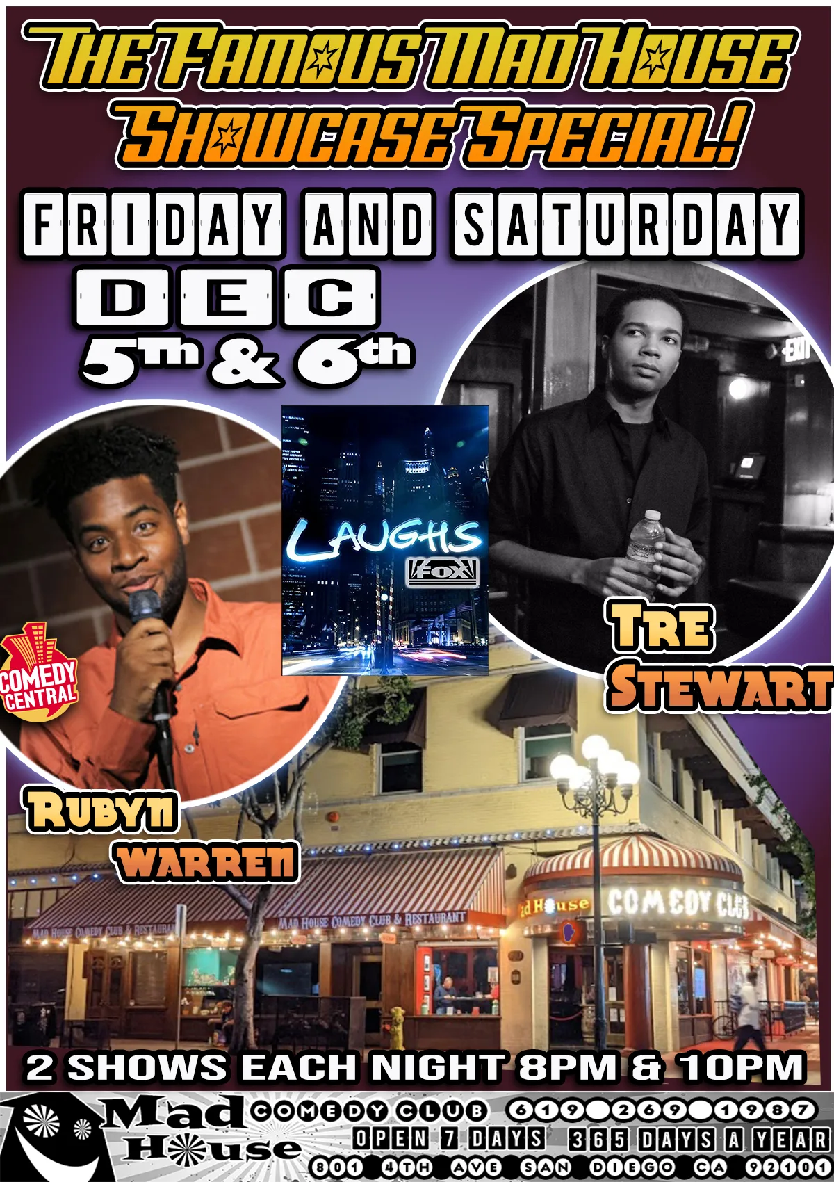It’s The World Famous Mad House Comedy Club’s 8 Comedian Showcase Special! Starring Tre Stewart as seen on Laughs on Fox! With Rubyn Warren from Comedy Central, BET, Netflix and more! Plus another 6 stand up comedians all on one show!