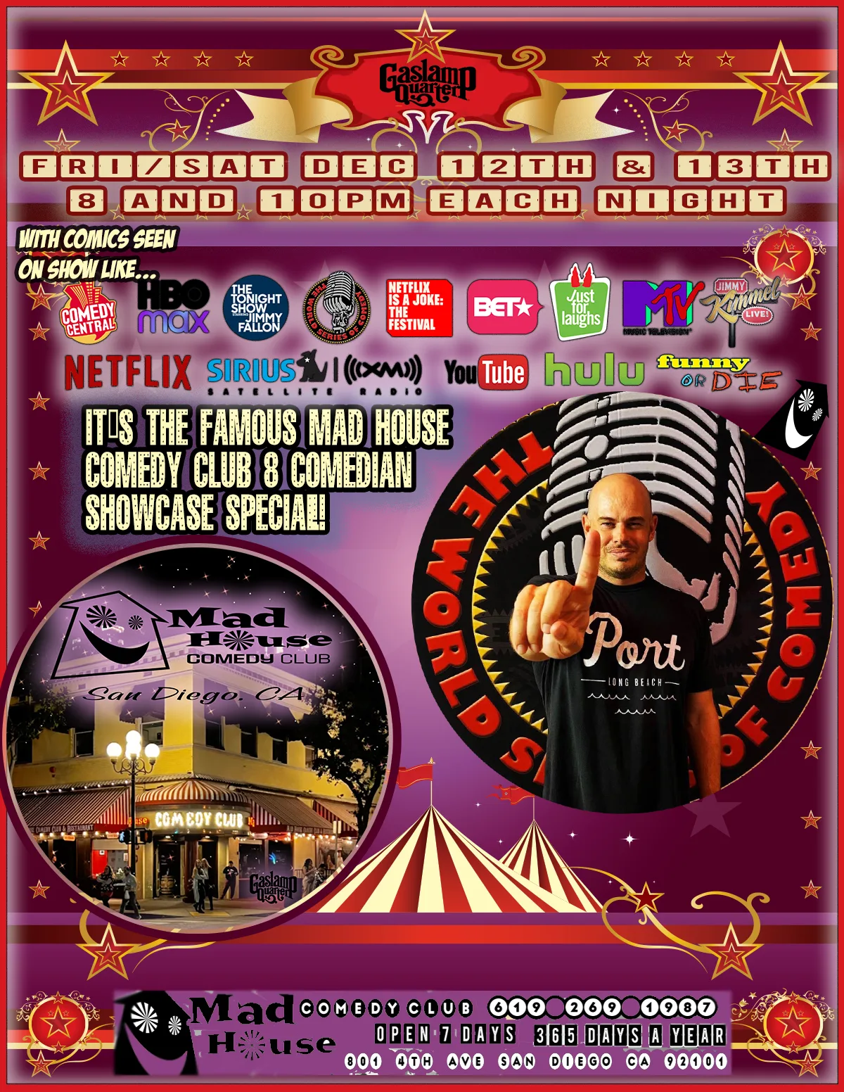 It’s The World Famous Mad House Comedy Club’s 8 Comedian Showcase Special! Starring Wyatt Cote Champion of the World Series of Comedy and more! Plus another 7 stand up comedians all on one show!