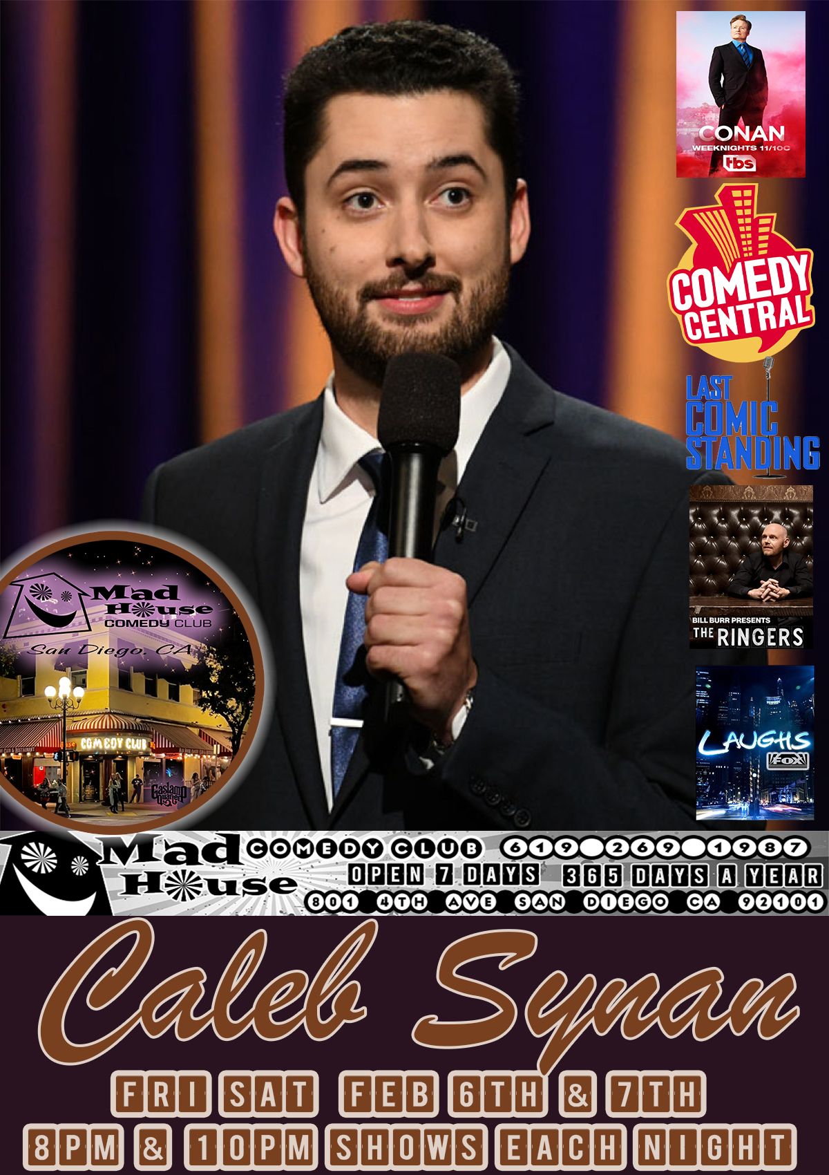 It’s The World Famous Mad House Comedy Club’s 8 Comedian Showcase Special starring Caleb Synan as seen on Conan, Comedy Central, Last Comic Standing, Bill Burr’s The Ringers, Laughs on Fox and more! Plus another 6 amazing stand up comics all on one show!