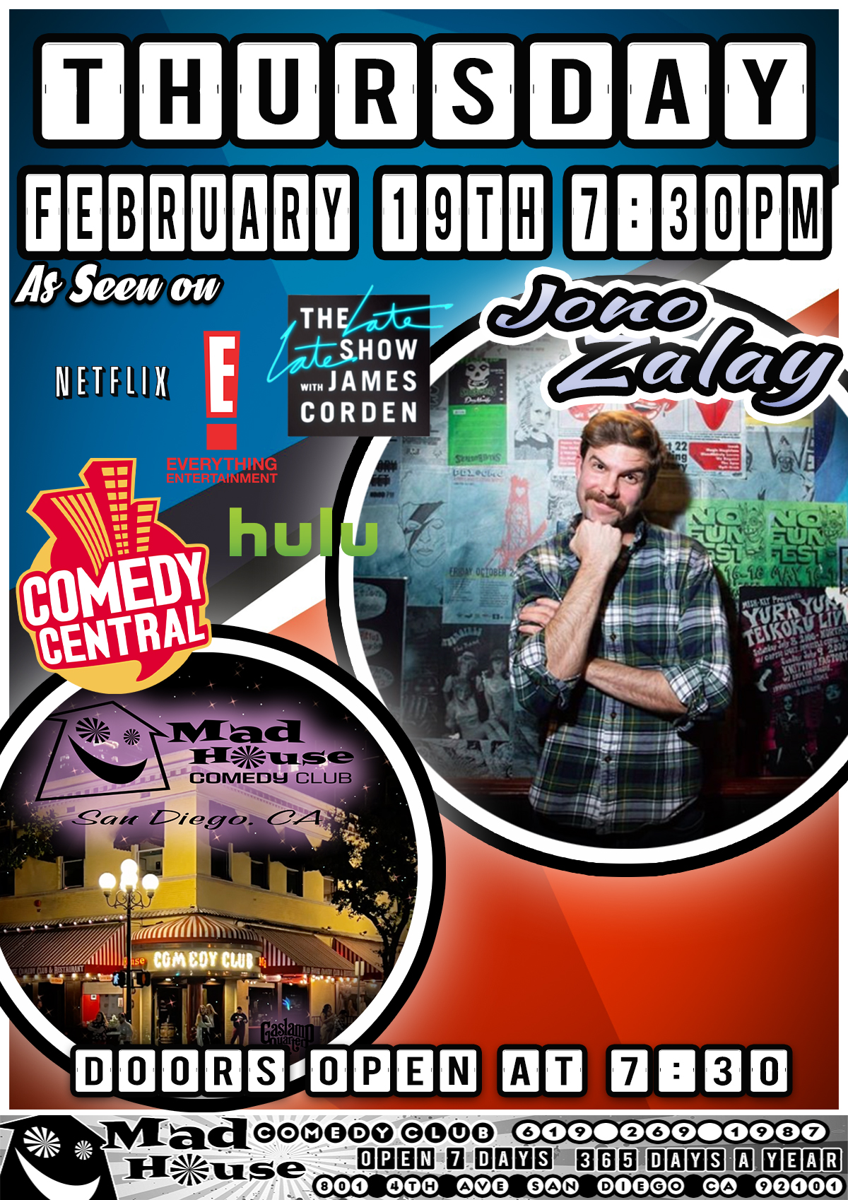 It’s The World Famous Mad House Comedy Club’s 8 Comedian Showcase Special – Double Headliner Weekend! James Schrader as seen at The World Series of Comedy and Champ of the San Diego’s Funniest Person Contest! With Emmy winner Dallas McLaughlin as seen on The Aquabats Super Show, Yo Gabba Gabba and more!