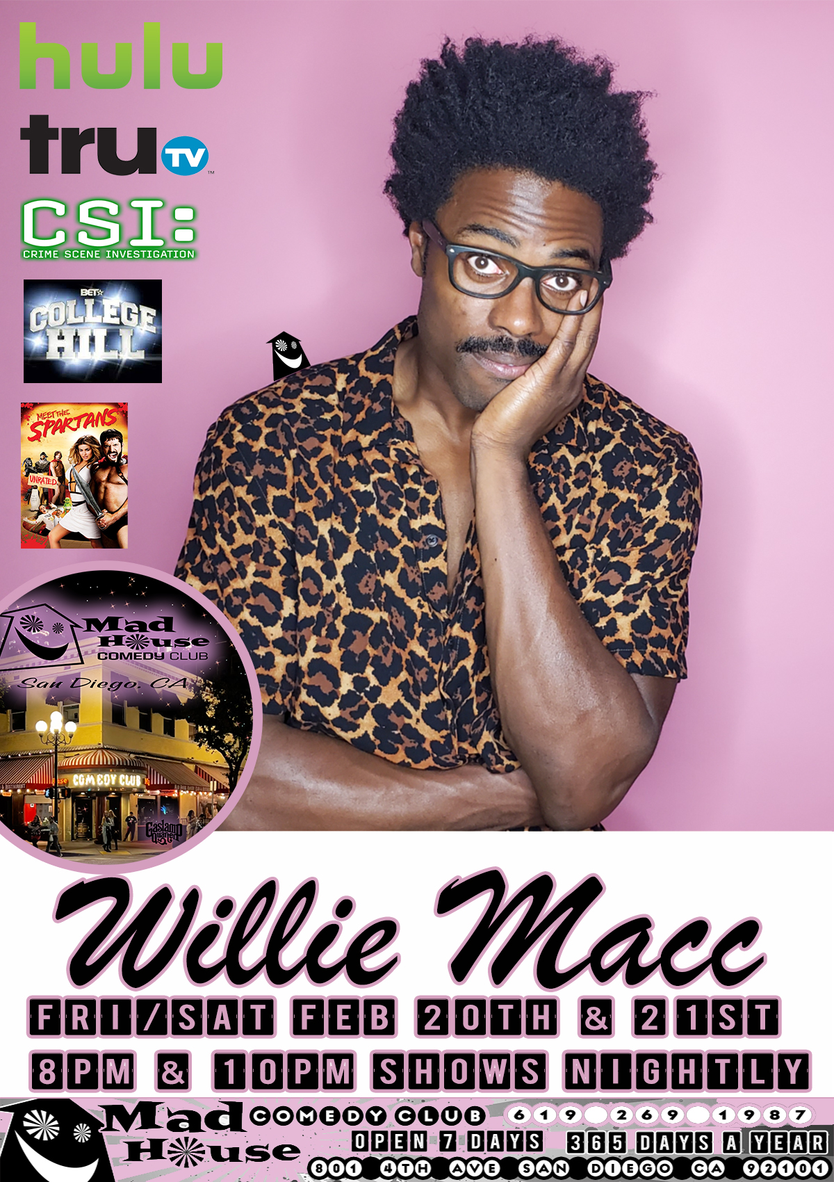 It’s The World Famous Mad House Comedy Club’s 8 Comedian Showcase Special starring Willie Macc as seen on America’s Got Talent, Hulu, Meet The Spartans, CSI, College Hill and more! Plus another 6 amazing stand up comics all on one show!