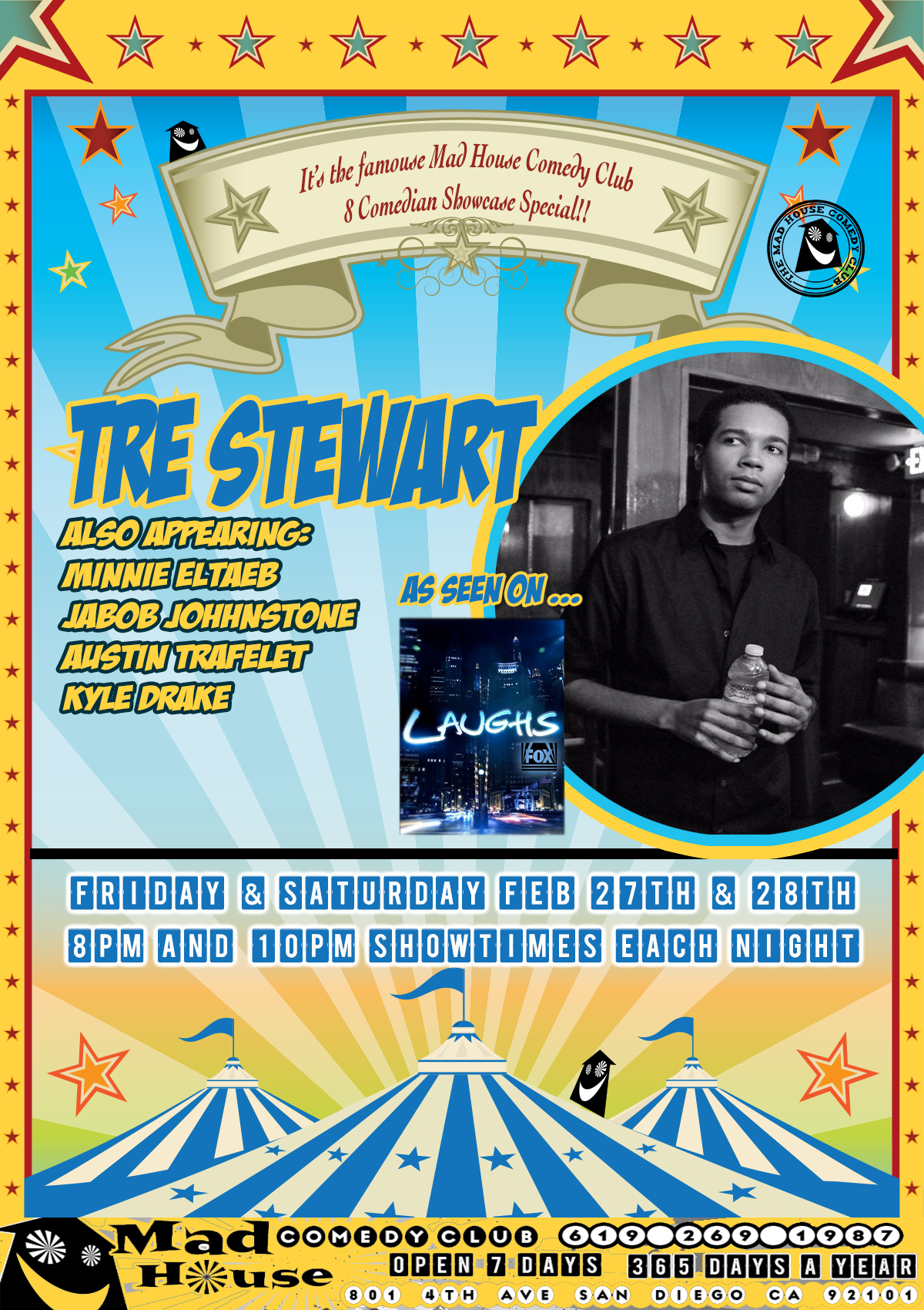 It’s The World Famous Mad House Comedy Club’s 8 Comedian Showcase Special starring Tre Stewart as seen on Laughs on Fox, Hulu and more! Plus another 7 amazing stand up comics all on one show!