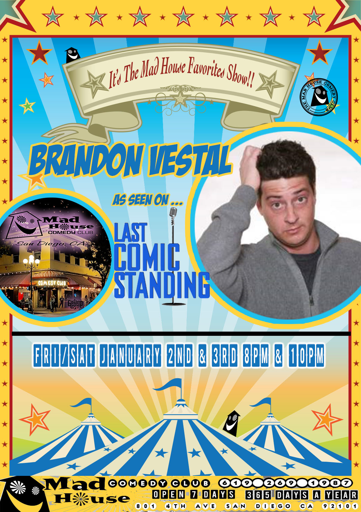 It’s The World Famous Mad House Comedy Club’s 8 Comedian Showcase Special! Starring Brandon Vestal as seen on Comics Unleashed with Byron Allen, NBC’s Last Comic Standing, Laughs on Fox and more! Plus another 7 stand up comedians all on one show!