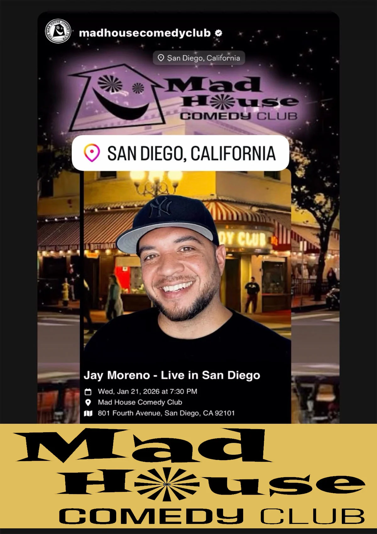 !!SPECIAL EVENT!! Jay Moreno live The World Famous Mad House Comedy Club! One night only. SPECIAL EVENT!!
